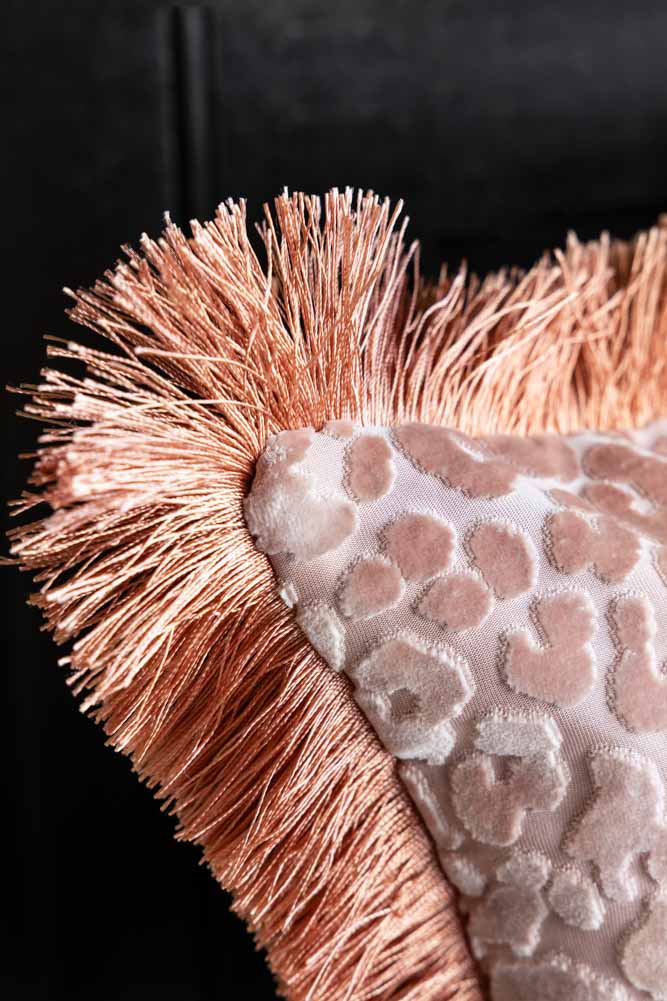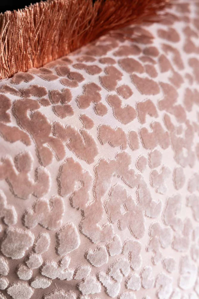 Meet the softest statement-maker around, the Blush Pink Leopard Velvet Cushion with Fringe Trim. Pretty, playful, and just a little bit fancy – this pink cushion brings a gentle pop of grown-up colour to your home. The base of the soft cushion fabric is smooth and sleek, while the leopard print comes through in lush cut velvet, giving you a dreamy, tactile texture that screams luxury. And the fringe trim? Absolute perfection. It adds an extra swish around the edges, making the whole cushion feel polished, a bit flirty and very put-together. Style it on your sofa, bed or on your favourite chair amongst your other leopard print homeware for an instant glow-up. It’s soft but makes a statement and is sweet but oh-so sophisticated. Go on, add a little extra blush to your life.