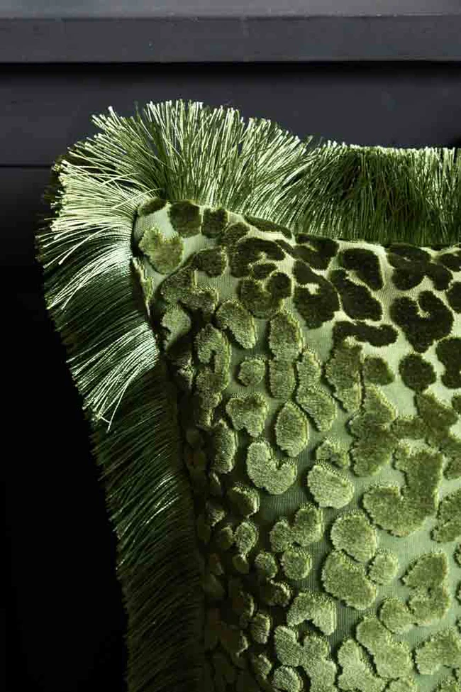 Say hello to your new statement cushion for the sofa: the Green Leopard Print Velvet Cushion. Fresh, fun and just the right amount of fancy – this leopard print cushion brings a gorgeous pop of green into your space while keeping things effortlessly sophisticated. The base fabric is smooth and sleek, while the leopard print steals the show in lush cut velvet, adding that irresistible texture you’ll find yourself stroking every time you walk past. And the fringe? Fabulous. That swishy trim frames the green cushion perfectly, adding a touch of movement, a hint of drama, and a whole lot of style. It’s the perfect way to lift a neutral sofa, add depth to your bed, or give your favourite chair a glow-up. Bold but still elegant, playful yet polished.