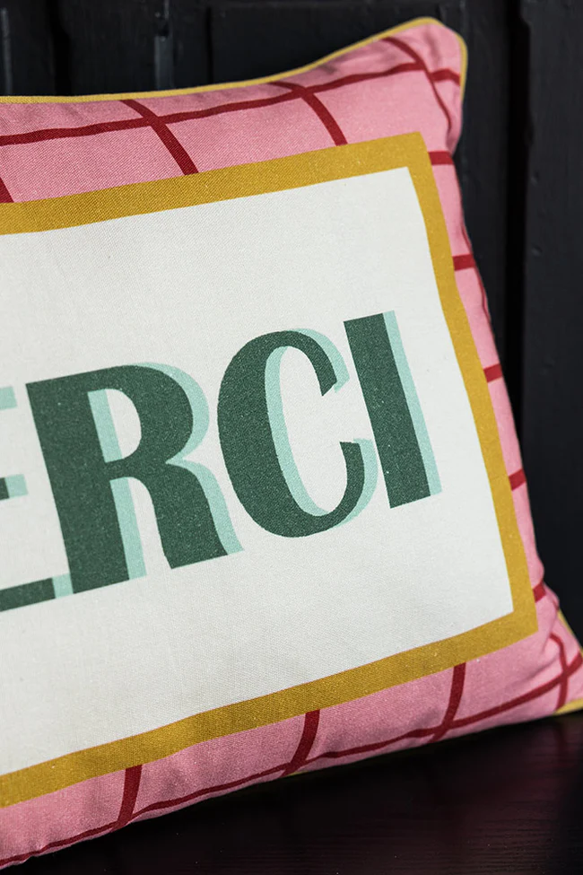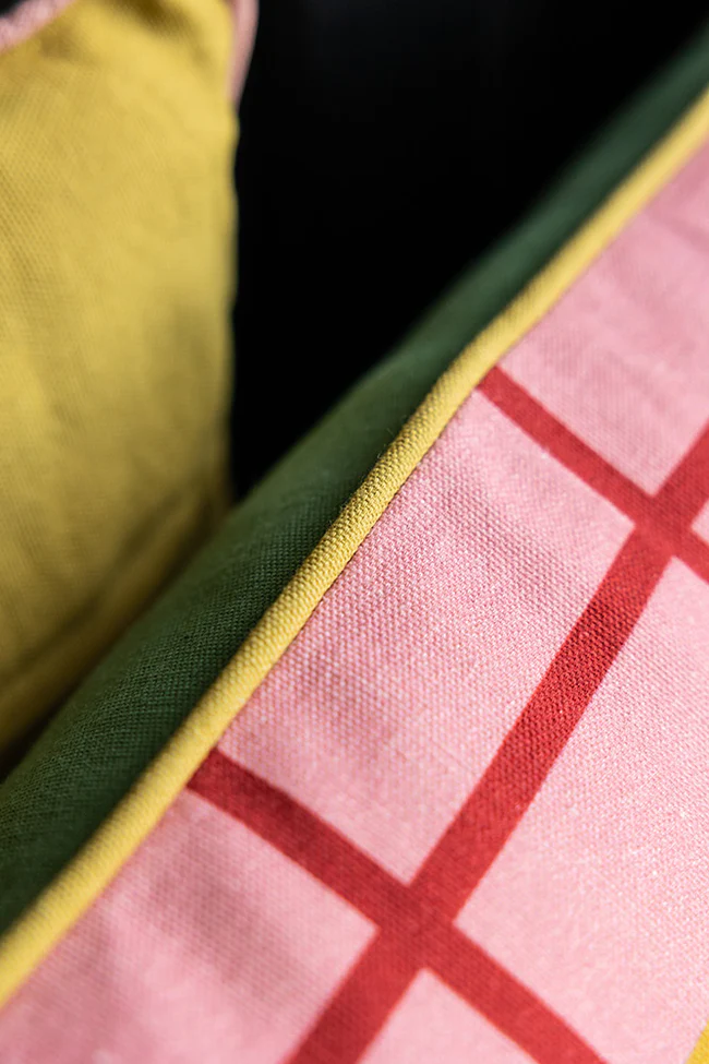 This rectangular cushion sports a retro check with modern typography and traditional gold piping to really mix things up. We love the clashing pink and red of the check, especially when styled against white or neutral walls. RSG co-founder Lucy’s home is decorated in white throughout, so she uses colourful accessories like this to lift and energise the space. The rectangular design means this cushion fits comfortably in the nook of a sofa arm or armchair, providing comfort and support as well as looking the part – it's a superb combination of beauty and practicality we love. Get creative about where you put this, and give your cushionscapes a refresh every few weeks or so – it’s a great way to see your home from a fresh perspective.
