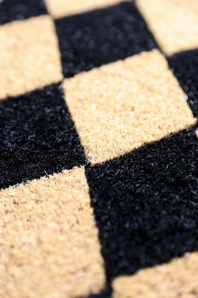 - Black and natural checkered pattern doormat