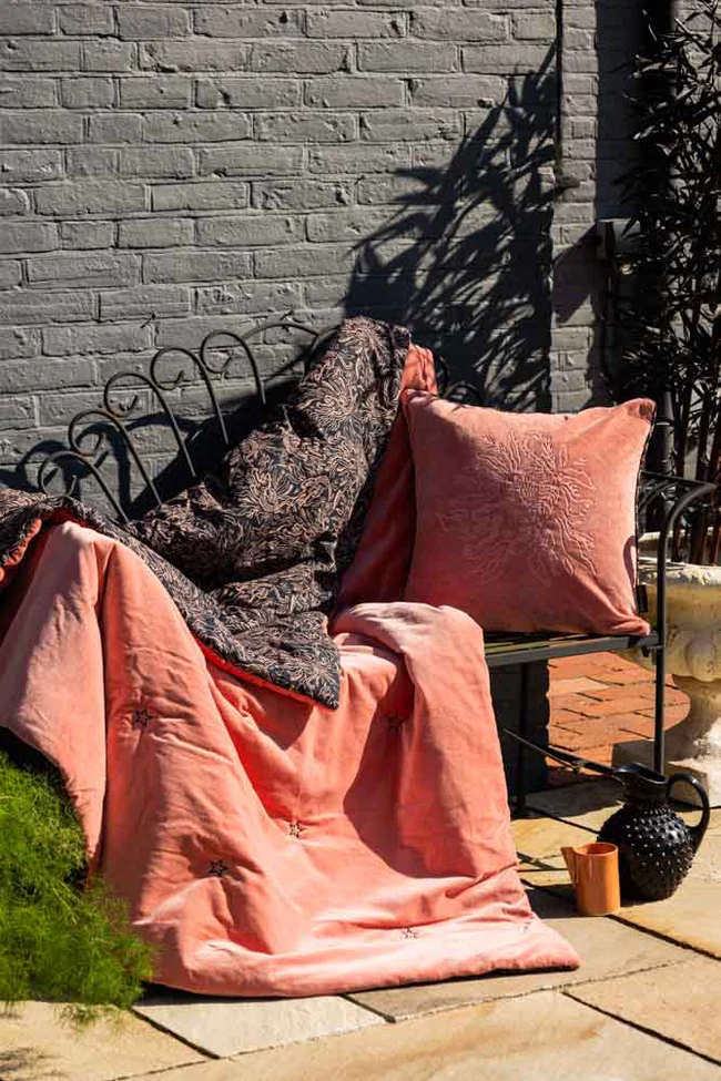 Get ready – because this bed cover is serving wildly gorgeous energy, and we are so here for it. One side? A bold black backdrop covered in prancing tigers and delicate leafy details in the dreamiest peachy pink, giving you that perfect mix of fierce and fabulous. Once flipped over, you’re in full-on luxury mode with the most sumptuous pink velvet, sprinkles with delicate gold embroidered stars for an extra celestial touch. The black and pink combo is super modern, effortlessly chic and just the right amount of playful. Whether you're draping it over your bedding, styling it with your other soft furnishings and quilts, or wrapping yourself up like the glamorous icon you are, this bed cover brings drama, softness and serious style. Why choose between bold and beautiful when you can have both?
